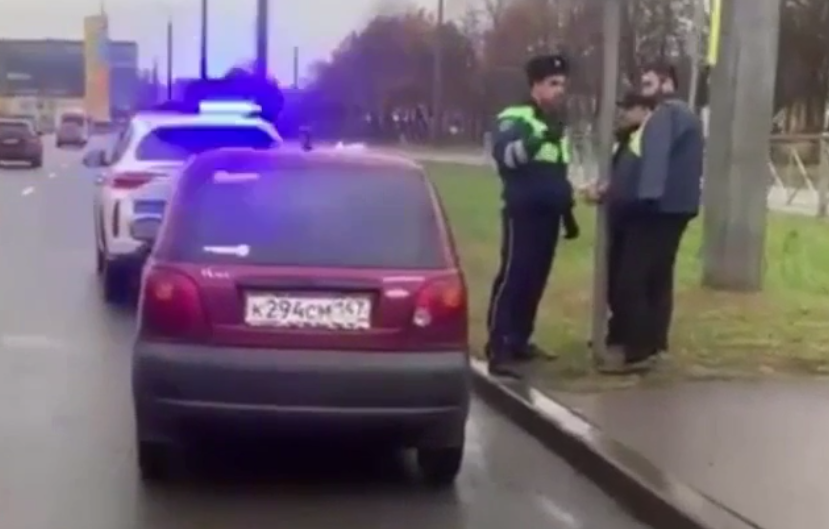 Сотрудник ДПС не стерпел хамства приезжего мужчины с бородой и пристегнул его наручниками к столбу