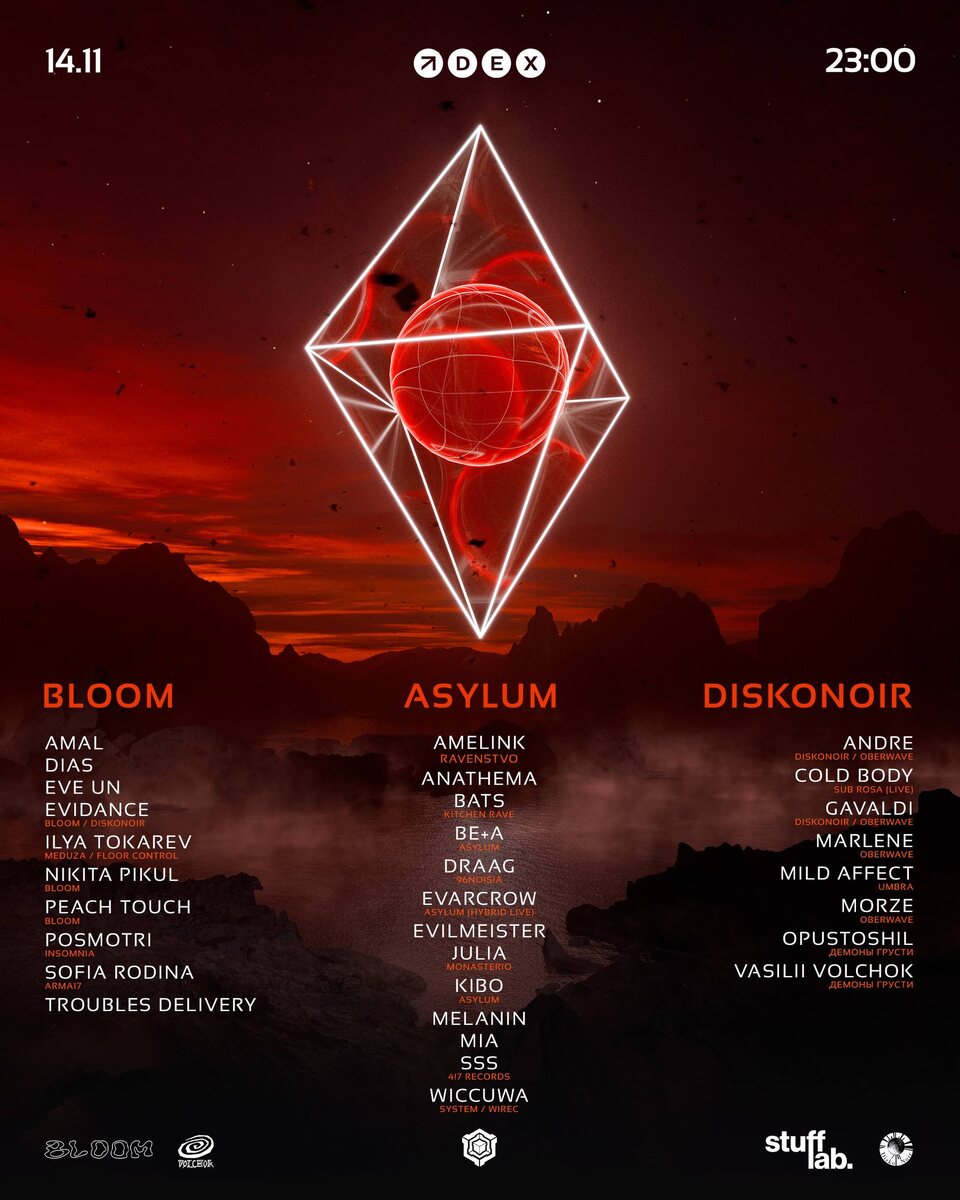 14 ноября команды Asylum, Bloom и DiskoNoir выступят мощной мультижанровой коллаборацией в DEX