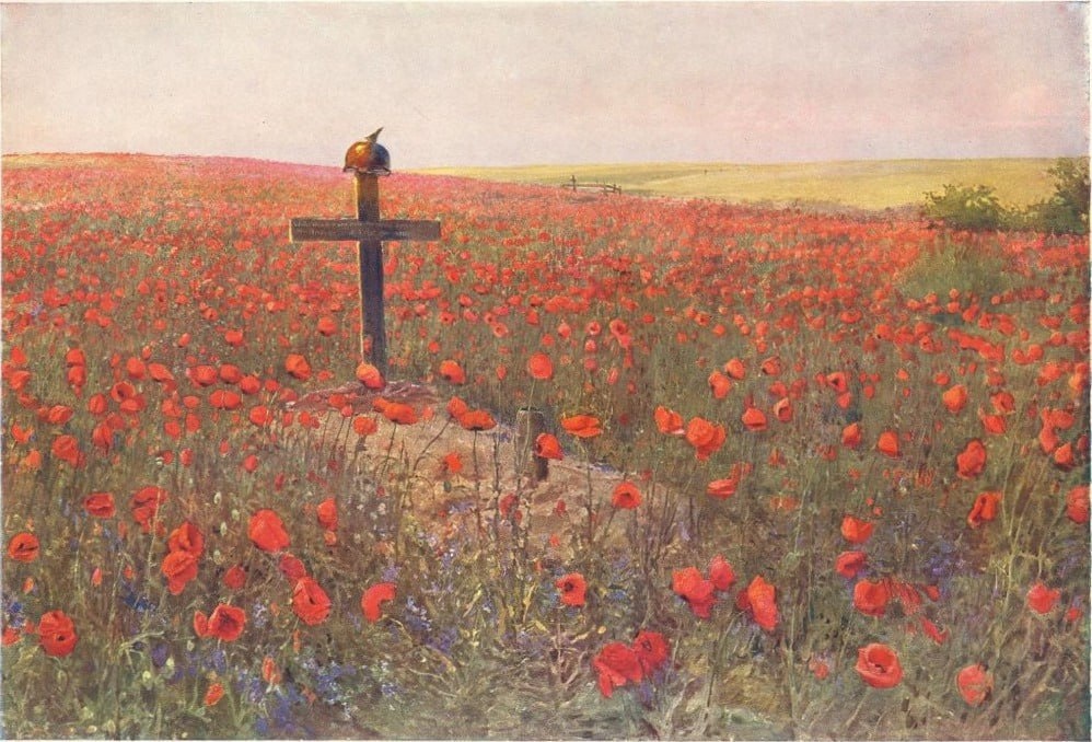 На полях Фландрии колышутся маки Среди крестов, стоящих за рядом ряд, Отмечая место, где мы лежим. А в небе Летают жаворонки, храбро щебеча, Заглушаемые громом пушек на земле. Мы Мёртвые. Не так давно Мы жили, видели рассветы, горящие закаты, Любили и были любимы, а теперь мы Лежим на полях Фландрии. Примите из наших рук Факел борьбы с врагом, Он ваш, держите его высоко. Если вы уроните нашу веру, — тех, кто погиб, Мы не сможем спать, хотя маки растут На полях Фландрии. Стихотворение, написанное во время Первой мировой войны подполковником канадской армии военно-полевым хирургом Джоном Маккреем.