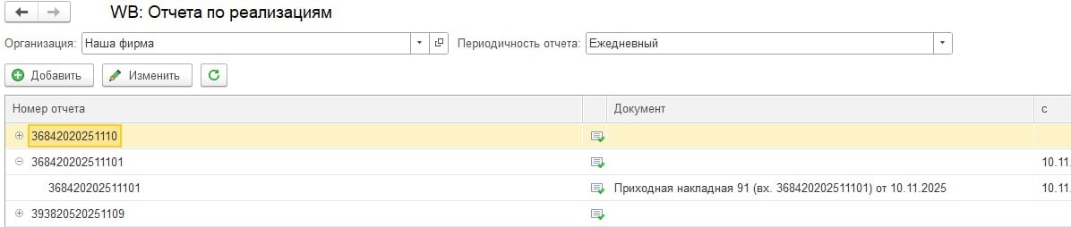 Новая версия 1.2.1.29 SynchroWB - Регламентное задание "Автосоздание документов по еженедельным отчетам по реализации". - Форма списка загруженных отчетов