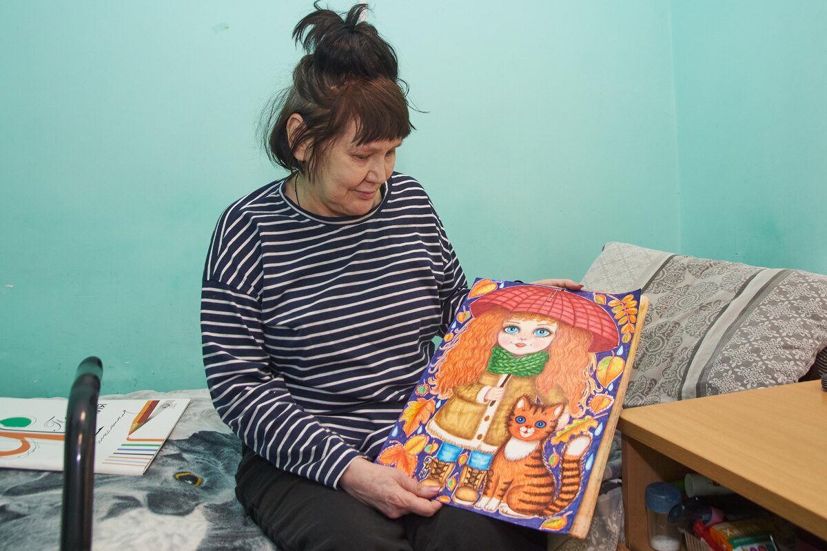 Маргарита, живущая в петербургском Центре учета и социального обслуживания граждан РФ без определенного места жительства, любит рыжих людей, прикладное искусство и с юмором, но без радости называет себя «Черной вдовой». ПЕТЕРБУРГСКИЙ ПУТЬ Маргарите 56 лет, родилась в Тыве, в Петербург приехала в 1988 году. Сначала пошла учиться на корабельного повара и затем перепробовала еще много разных специальностей. Вышла замуж, но через пять лет мужа убили. Больше официально в браке не была, но имела двух сожителей, что также умерли, пробыв с ней в отношениях 11 и 15 лет. Из-за этого Маргарита с не очень веселой иронией и называет себя «Черной вдовой». Каждый раз после смерти своего мужчины она покидала жилье – жила у подруг, в общежитии, в итоге оказалась на улице. В определенный момент начались боли по всему позвоночнику, боли в коленях – стало сложно ходить. Попала сначала в Максимилиановскую больницу, затем в благотворительную организацию «Покровская община» и сейчас живет в Центре учета. Зав