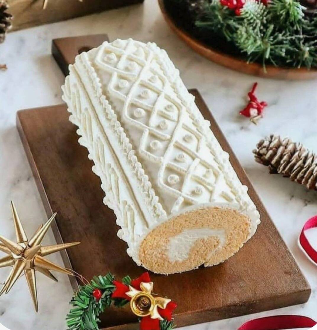 Собрала для вас простые, но эффектные идеи новогоднего оформления рулетов — всё можно легко повторить даже дома🎄 1) Отсадите крем из кондитерского мешка, создавая узор, как на зимнем свитере. 2) Украсьте рулет съедобными шишками, бантами и веточками розмарина — он идеально имитирует еловые ветки. 3) Сделайте «крышу» из печенья савоярди и добавьте шапку крема, будто рулет припорошён снегом. 4) Отсадите гирлянду из крема и украсьте её леденцами — подойдут и настоящие. 5) Добавьте ягоды клюквы, дольки сушёного апельсина и немного зелени — ярко и по-зимнему. 6) Розмарин, снежинки из песочного теста и золотые шарики — минимализм, который всегда смотрится стильно.