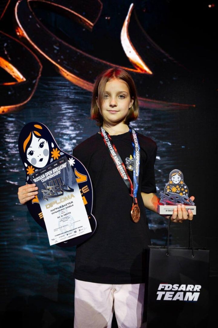 Софья Скрынкина из Ессентуков заняла третье место на соревнованиях по брейкингу Russian Open Breaking Championships среди девочек, сообщили в пресс-службе минспорта Ставрополья. Состязания проходили во Дворце гимнастики Ирины Винер в Москве с 7 по 9 ноября. В них участвовали спортсмены из 20 стран. Юная жительница курорта готовилась к соревнованиям под руководством тренера Сергея Нестеренко, сообщили в пресс-службе минспорта Ставрополья.