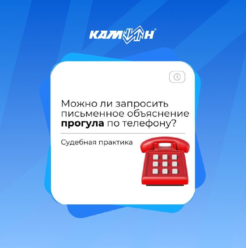 🤔 Можно ли запросить письменное объяснение прогула по телефону? Давайте обсудим новый судебный случай, который заставит задуматься, как уведомлять сотрудников о необходимости предоставить объяснение за прогул. 😐 Итак, по закону — прогул — это серьёзно, и работодатель вправе уволить за него (пункт "а" п. 6 ч. 1 ст. 81 ТК). Но вот как это всё делать правильно? ℹ️ Ситуация: Сотрудник после отпуска не вышел на работу. Работодатель решил действовать быстро, а именно позвонил ему по телефону и сказал, что тот должен предоставить письменное объяснение. Вот только это был не самый правильный способ! Да, уведомить можно любым способом, но после того, как вы позвонили, работник должен получить время для ответа. ⚡️ Два дня! ℹ️ Как поступил работодатель? Он позвонил 10-го числа, сообщил по телефону, что объяснение нужно предоставить, и в тот же день направил письменное уведомление. 📌 Но сотрудник получил его только 20-го числа. И как вы думаете, что сделал работодатель? Правильно, уволил ег