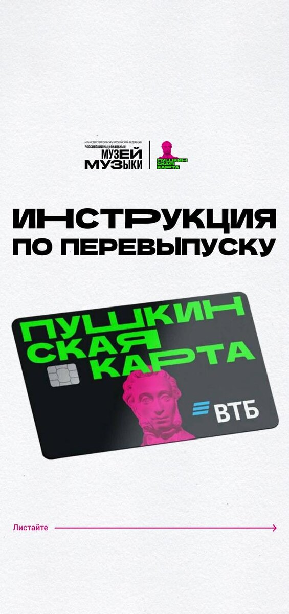 Музей музыки подготовил для вас инструкцию по перевыпуску Пушкинской карты! Листайте карточки