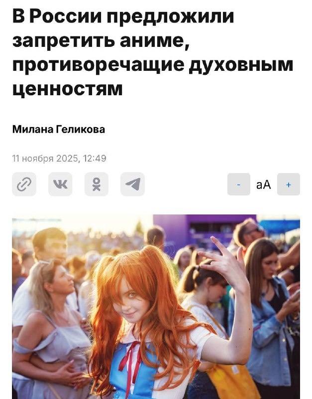 В ответ на пост В России захотели ЗАПРЕТИТЬ аниме — общественники предложили ввести жёсткий контроль над японскими мультиками. Причина: некоторые картины «подрывают духовно-нравственные ценности» россиян. Однако полностью запрещать жанр не планируют — но сериалы с деструктивными темами могут попасть под бан. У анимешников траур. CtrlAltDelights- подписаться