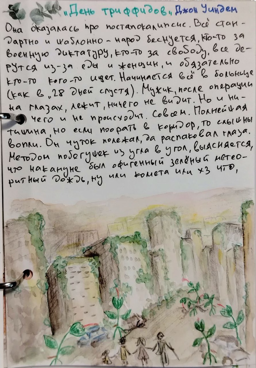 Она оказалась про постапокалипсис. Всё стандартно и шаблонно — народ беснуется, кто-то за военную диктатуру, кто-то за свободу, все дерутся из-за еды и женщин,и обязательно кто-то кого-то ищет. Начинается всё в больнице (как в «28 дней спустя»). Мужик, после операции на глазах, лежит, ничего не видит. Но и ничего и не происходит. Совсем. Полнейшая тишина, но если поорать в коридор, то слышны вопли. Он чуток полежал, да распаковал глаза. Методом побегушек из угла в угол, выясняется, что накануне был офигенный зелёный метеоритный дождь, ну или комета или хз что, но главное, что было красиво, необычно и все люди, по всей земле, это явление наблюдали. На утро, все кто это видел, ослепли. И вот у людей паника. Кто в самовыпел, кто случайно поломался, кого затоптали. Паника и все ищут пищу. Более хитрые стали вылавливать зрячих и заставлять их себе помогать. И вот, главный герой спасает себе деву, которую один не добропорядочный слепой себе присвоил. С этой девой они выясняют, что по мимо сл