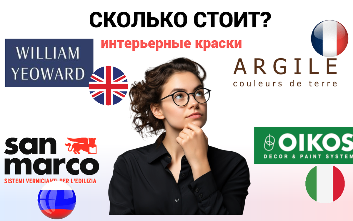 Поговорим о ценах. Рассмотрим разных производителей интерьерных красок. Предлагаю начать с нашего соотечественника, бренд San Marco, который последние несколько лет успешно производит свою продукцию в России. С историей этого бренда мы знакомили вас в нашей предыдущей статье. Теперь немного цифр. Рассмотрим самую популярную краску это бренда. Стоимость краски всего 364руб за 1м2. То есть, стоимость покраски одной комнаты, площадью скажем - 16м2, и высотой до 3м - 18 232руб с небольшим запасом краски. Стоимость 1м2 - 433рубля. Отличная цена для профессиональной итальянской краски-эмали. Отличительная особенность этой краски в том, что она прекрасно растекается, создавая ровную матовую поверхность с минимальной шагренью! Стоимость покраски одной комнаты, площадью - 16м2, и высотой до 3м - 20 890руб с небольшим запасом краски. Стоимость 1м2 этой английской краски - 508рублей. Несколько степеней блеска, от глубоко-матового, до краски с сатиновым эффектом. Интересная колеровочная палитра,