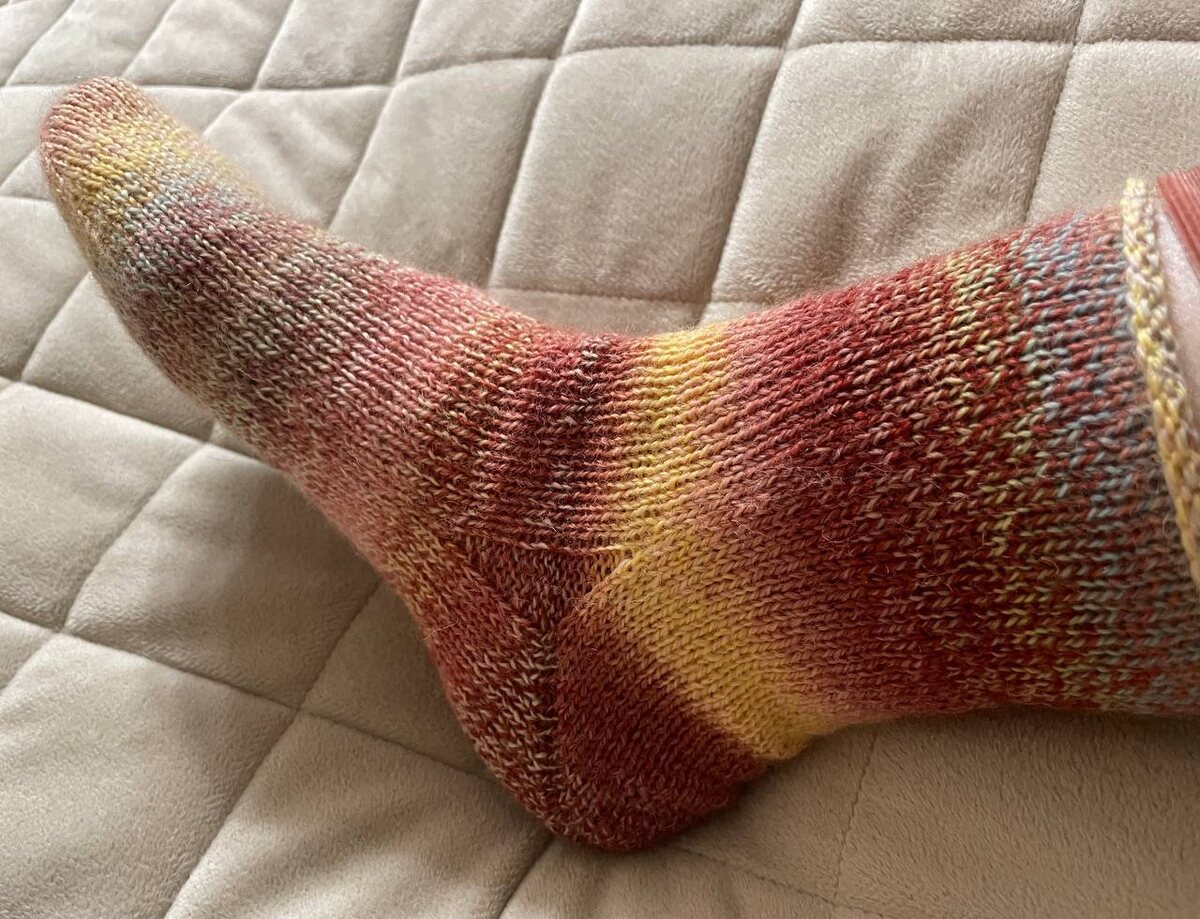 Здесь у Светы за кадром остались удовольствия номер два и номер три. 😂 Потому что можно еще потискать моточек, а потом наслаждаться в процессе вязания! Представляем вашему вниманию удовольствие номер четыре - носим носочки! И вот теперь расскажите нам, кто из вас самый стойкий и удержится от такого великолепия?!