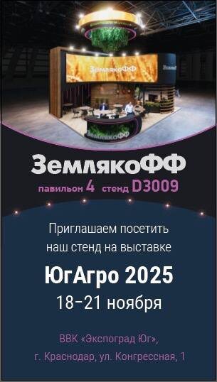 🔥До "ЮгАгро" осталась всего НЕДЕЛЯ! Совсем скоро, с 18 по 21 ноября, Краснодар станет центром притяжения для всех аграриев! Международная сельскохозяйственная выставка "ЮгАгро 2025" распахнет свои двери, и мы, компания "ЗемлякоФФ", с нетерпением ждем встречи с вами! Не пропустите возможность: ✅ Ознакомиться с полным спектром проверенных и инновационных средств защиты растений "ЗемлякоФФ", разработанных для максимальной урожайности. 🌱 Первыми узнать о наших НОВИНКАХ! Мы приготовили решения, которые выведут ваш агробизнес на новый уровень! 👨🌾 Получить профессиональную консультацию от наших экспертов, которые помогут подобрать оптимальную стратегию защиты растений для ваших конкретных условий. Успейте спланировать свой визит на "ЮгАгро"! Мы уверены, что эта неделя пролетит незаметно! 👉 Ждем вас : ВВК «Экспоград Юг», павильон 4, стенд D3009! До встречи на нашем стенде! 😊