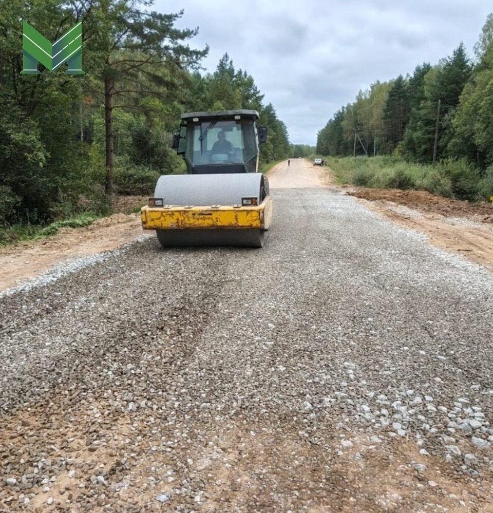 🚧В Сухиничском районе по нацпроекту «Инфраструктура для жизни» продолжается ремонт участка дороги М-3 "Украина" - Шлиппово - Соболевка