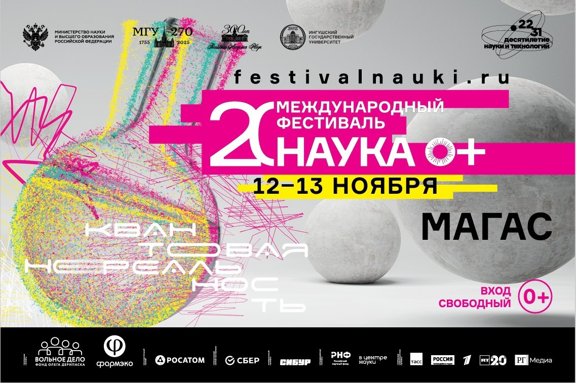 ❤️ Международный Фестиваль НАУКА 0+ в ИнгГУ! ❤️ 12-13 ноября в Ингушском государственном университете пройдут мероприятия 20-го Международного Фестиваля НАУКА 0+. ❤️Фестиваль НАУКА 0+ стал одним из важнейших мероприятий в нашей стране, направленных на популяризацию науки в обществе. ❤️Тема Фестиваля 2025 года – «Квантовая вселенная». ❤️Целью 20-го Международного Фестиваля НАУКА 0+ является повышение интереса к научно-исследовательской деятельности, а также профориентация молодежи. ❤️ Фестиваль предоставляет уникальную возможность для проведения диалога между научным сообществом и широкой общественностью. ❤️ Приглашаем всех желающих принять участие и узнать больше о мире науки!