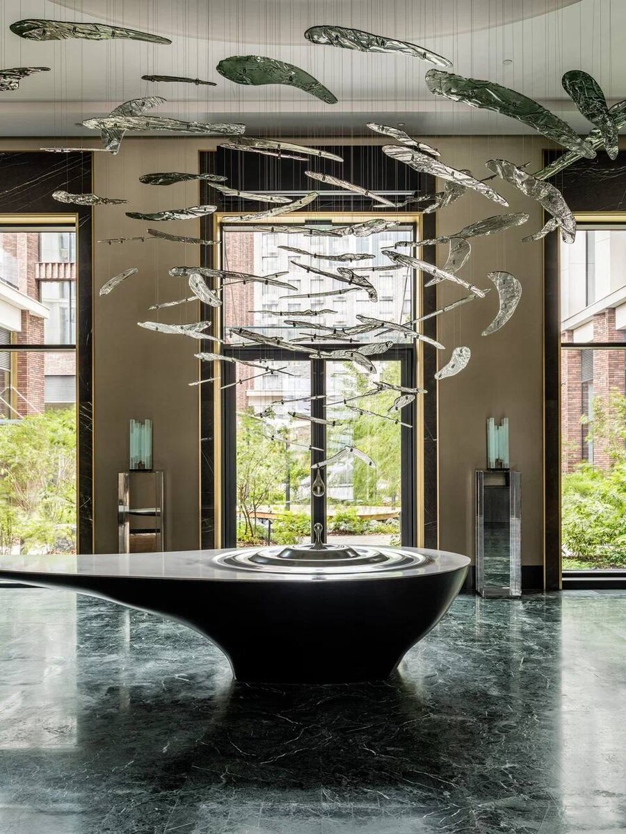 Sydney Prime — наш новый проект Мы рады поделиться новым проектом нашего бюро — интерьером клубного дома Sydney Prime на Шелепихинской набережной. Лобби, типовые этажи и паркинг мы создали в духе well-being — с ощущением природы в центре мегаполиса. Здесь нет избыточного декора: только естественные формы и материалы, в которых отражается дыхание воды, льда и листвы. Мрамор, патинированная латунь, декоративная штукатурка и состаренное зеркало объединены в спокойную природную палитру. Градиентная покраска стен, тёмно-зелёный фактурный мраморный пол, дверные порталы из тёмного камня и мягкая мебель терракотового цвета формируют цельный образ. В проекте все предметы интерьера стали частью арт-концепции — большая часть мебели выполнена на заказ по чертежам Олега Клодта. Стеллажи из тёмного шпона, консоли с художественным стеклом и зеркальные постаменты для скульптур подчеркивают эстетику пространства. «Наша задача — выйти за рамки декора и создать среду, взаимодействующую с человеком н