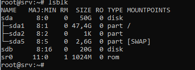 Также имеется диск /dev/sdb, который не разделён ни на какие разделы — именно его и нужно подключать.