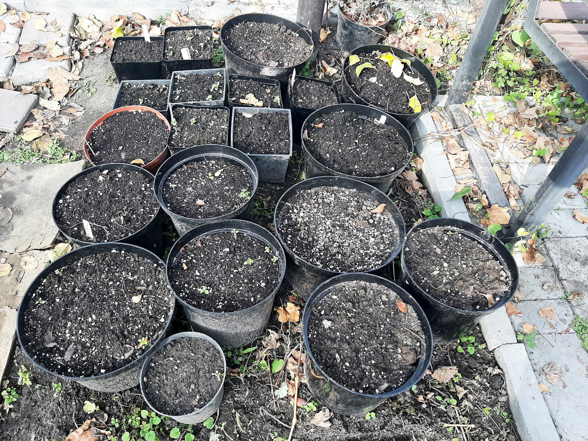Ох, какая у нас была погодка на выходных, прям сама себе завидовала. Температура +19 и никакого ветерка, естественно, я попыталась провести как можно больше времени в саду, тем более что в нашем ДНТ шли какие-то плановые ремонтные работу по обслуживанию электросетей и не было подачи электричества. Следовательно, в доме торчать смысла не было-все в сад! Задачи свои я расставляла по приоритетам, самой первой в планах значилась прикопка горшков с луковичными, их что-то много оказалось, и луковиц, и, соответственно, горшков. Не знаю, кто их столько насажал, лично я такого количества горшков заполнять не планировала. Стояли они в разных частях участка и не смущали, а собрала в одну грядку и слегка опешила. По задумке должно было быть всего десять больших горшка, из них по два штуки с тюльпаном Peppermint Stick и нарциссом Minnow. Это уже четыре. Но, когда начались посадки, я не смогла расстаться с некрупными луковицами Sweet Desire и два 10-литровых горшка ими зарядила. Таким образом уже ше