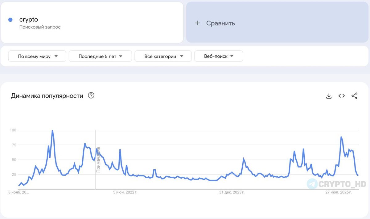 🧐 Интерес розницы (толпы) к криптовалюте стремительно снижается, судя по количеству запросов в Google