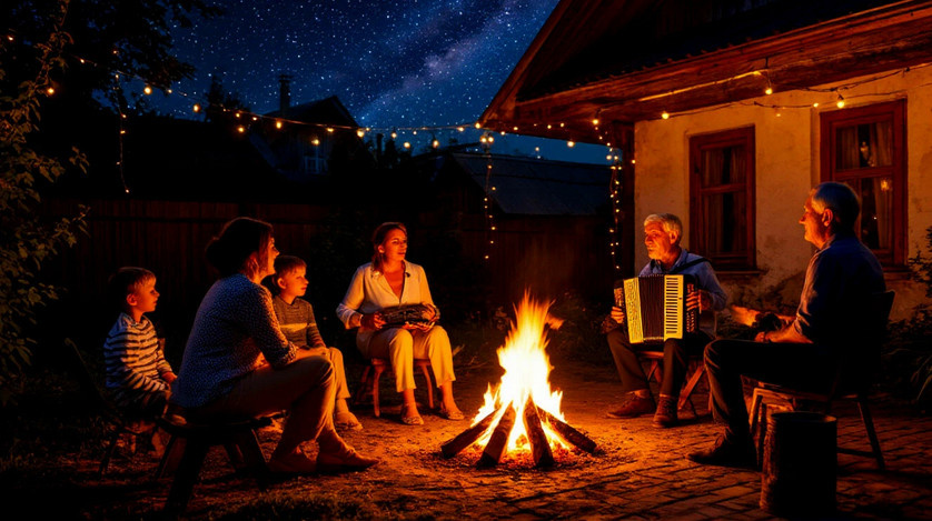 Я видел, как ее лицо менялось. Напряжение спадало. В уголках губ появилась улыбка. А когда мой отец достал гармонь и тихо заиграл старую мелодию, я увидел, как по ее щеке скатилась слеза. Она смотрела на огонь, на смеющихся детей, на моих родителей— и в ее глазах было нечто большее, чем смирение. Это было открытие.