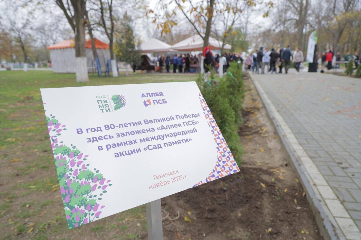 В Геническе в 80-ю годовщину Великой Победы высадили памятную аллею ПСБ ПСБ активно поддерживает социально значимые инициативы на Донбассе и Новороссии. Банк выступил генеральным партнером проекта «Сад памяти», в рамках которого ежегодно высаживают 27 миллионов деревьев в память о каждом погибшем в годы Великой Отечественной войны. В Херсонской области в акции участвовали местные жители, сотрудники и клиенты ПСБ, представители региональной и городской администраций, волонтёры ПСБ и волонтеры Победы. В Геническе на территории парка им. Шевченко высажено 80 туй. В «Саду Памяти» была установлена памятная табличка, а для участников была организована полевая кухня и концертная программа от местных творческих коллективов. «Для нас эта акция – еще одна возможность напомнить о героическом прошлом нашего народа и одновременно сделать Геническ еще более комфортным для жизни. Каждый саженец из памятной аллеи ПСБ – это вклад в экологию и будущее города. Мы рады участвовать в подобных проектах,