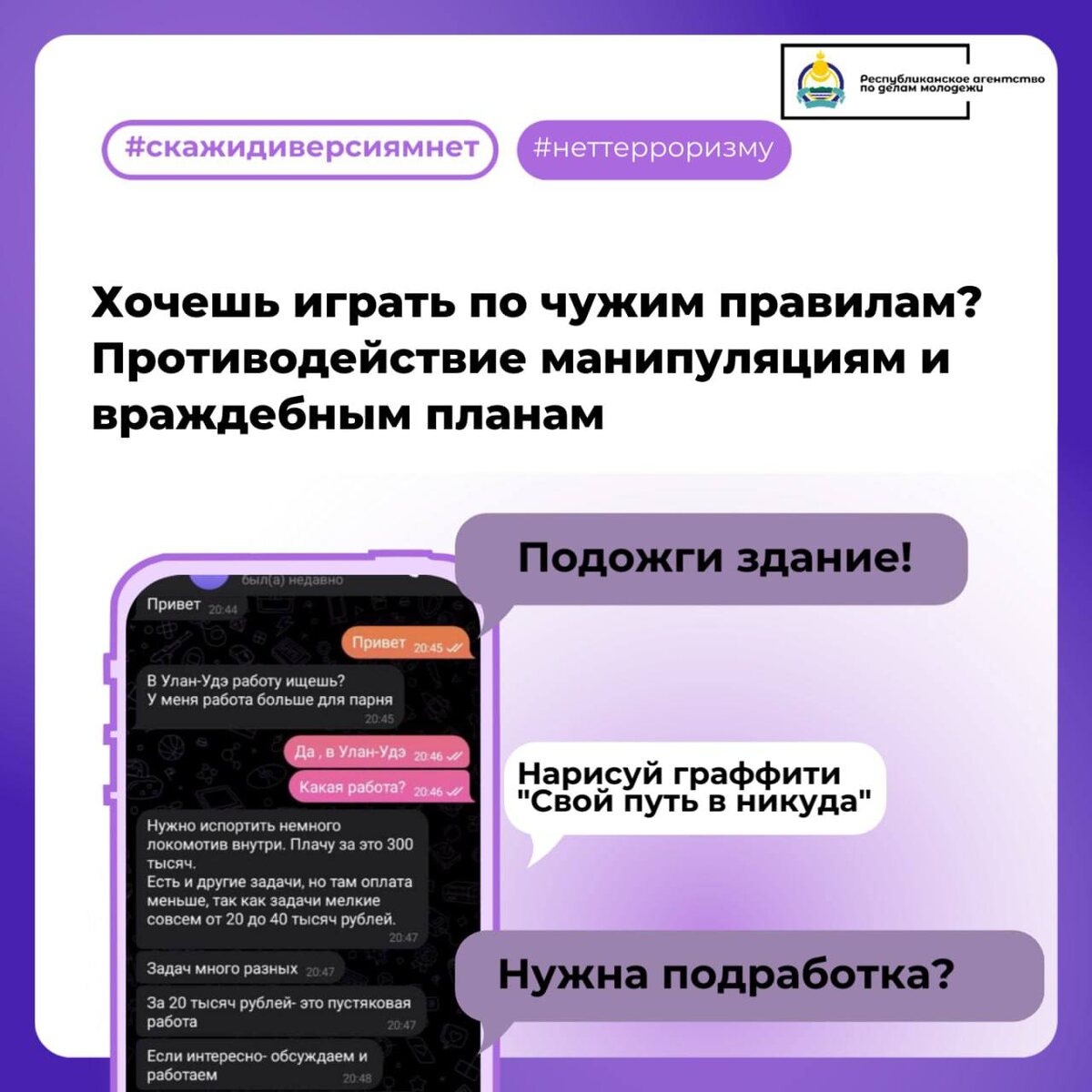 💥Хочешь играть по чужим правилам?💥 ❌ Диверсия — это не абстрактный урон. Это: 🔌 Отключение света в твоём же городе, где в больнице на операционном столе может оказаться чья-то жизнь. 🚆 Разрушение путей, по которым везут еду, лекарства и людей. 💥 Взрыв, который уносит жизни ни в чём не повинных людей. Какие могут быть последствия? ➡️ Статья 281 «Диверсия»: Лишение свободы от 8 до 20 лет ➡️ Статья 205 «Террористический акт»: лишение свободы от 10 до 20 лет ➡️ Статья 275 «Государственная измена»: лишение свободы от 20 до 25 лет Твои амбиции, планы на будущее, образование, любовь, путешествия — всё это превратится в расписание тюремного режима. 💡Не дай себя использовать! Часто вербуют через анонимные чаты, мутные каналы и предложения «легкого заработка». Сулят деньги и «романтику», а на деле — полное уничтожение твоей судьбы. Твоя жизнь-твой выбор. Живи🙏