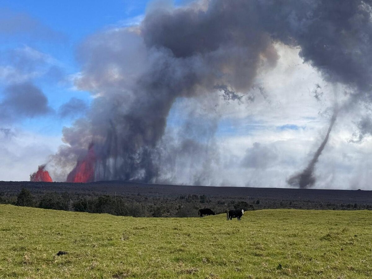 🌋 Удивительное зрелище на Гавайях: у извергающегося вулкана Килауэа туристы запечатлели раскалённые фонтаны лавы и серию пыльных вихрей