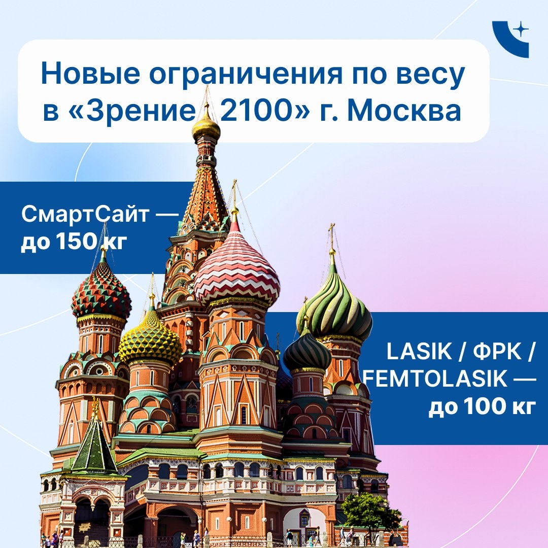 Новые ограничения по весу в «Зрение 2100» г. Москва Чтобы заранее оценить комфорт и корректную работу оборудования, просим пациентов учитывать технические возможности операционного стола и установок: • СмартСайт — допускается вес пациента до 150 кг. • Lasik / ФРК / FemtoLasik — допускается вес пациента до 100 кг (оборудование рассчитано именно на эту нагрузку). Метод подбирается совместно с врачом по результатам комплексной диагностики. Если вы находитесь на границе порога или выше, пожалуйста, сообщите об этом при записи — мы подскажем, какие варианты доступны и как лучше спланировать визит. Задавайте вопросы в комментариях — ответим и поможем с организацией. 👉 Вы можете записаться на диагностику и операцию в любую клинику, на удобную вам дату по бесплатному телефону горячей линии: 88001009876 или онлайн по ссылке: glorias.ru/glmhg/?utm_source=tg&utm_medium=smm&utm_campaign=common_post 18+. Имеются противопоказания, необходима консультация специалиста. ⭐️ Глазные операции, дос