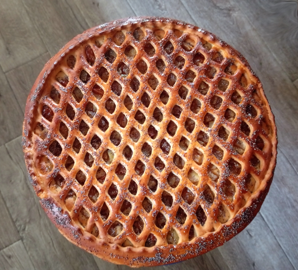 Когда мой сын был маленьким, он часто произносил странную со стороны фразу: "Мама сварила компот! Значит будет пирог". Какая связь, спросите вы? Да прямая. Если компот из сухофруктов варится, то часть их идёт в начинку для пирога. Потому что грех выбрасывать вкусную курагу, чернослив, да и яблоки-груши бывают в сухофруктах очень вкусные. Сливаю компот через сито, выбираю самые симпатичные фрукты и измельчаю их блендером или в измельчителе. Если начинка получается слишком жидкой, загущаю её измельчённым печеньем или, как в данном случае, делала торт медовик и осталось часть измельчённых коржей для посыпки торта. Я их в пакетик положила, заморозила и использую по мере надобности. Вот начинку для "компотного пирога" загустить, например. Тесто может быть любым дрожжевым. Например, традиционным и несложным. 600 г муки