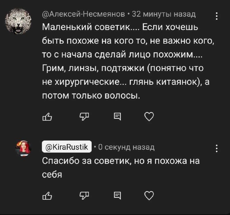 Советчики из интернета Вы меня извините, но что хотел сказать мужчина? ♂️ Я вообще не понимаю что пишут некоторые комментаторы Свой образ, под которым мне оставил комментарий леопард тоже прикрепляю P.S.: может это про Ариэль на футболке? так это просто футболка, завтра надену с Эдвардом и Бэллой из Сумерек, хоа-хоа-хоа-хоа...