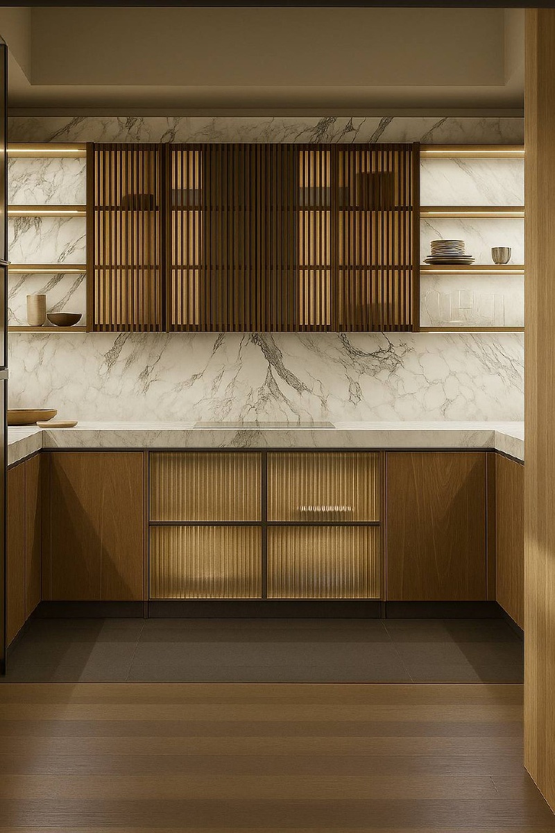⭐️ В кухнях рифлёное стекло играет особую роль - оно соединяет эстетику и функциональность