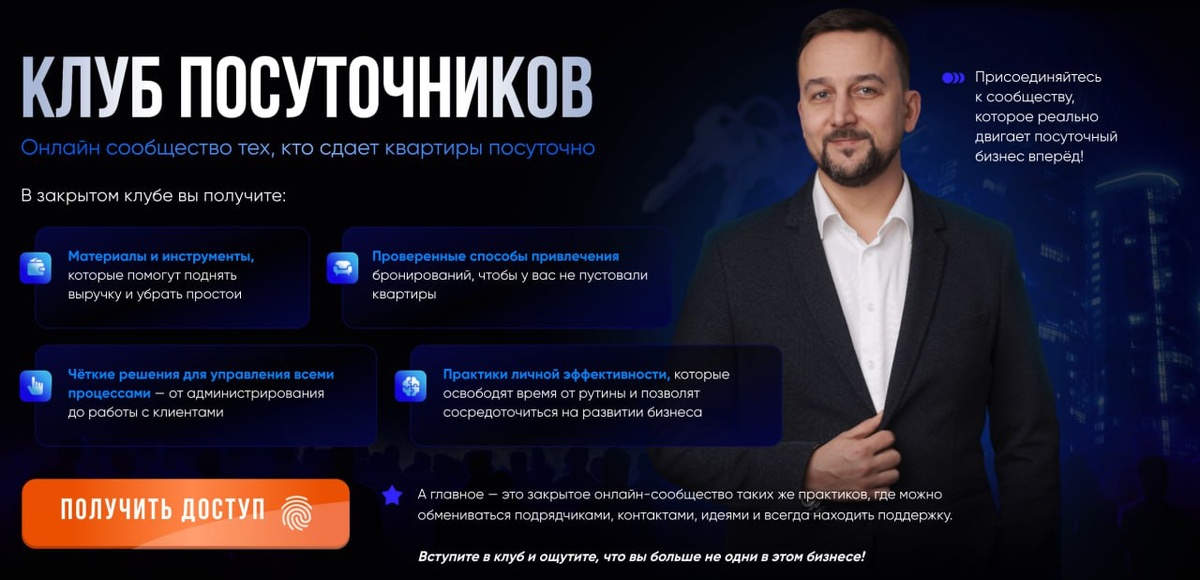 Вспомните, с чего начинали. Первые гости, первые доходы, первые проблемы и решения, которые вы находили в одиночку. Сначала это был вызов. Было захватывающе. А теперь? - Телефон, который не умолкает. - Постоянные уборки, отчеты, поиск сантехников, вопросы от гостей. - Вы не развиваете бизнес. Вы его спасаете. Каждый день. Просто, чтобы он не развалился. Знакомое состояние? Вы не один такой. Большинство владельцев застревают в этой рутине, убеждая себя, что так и должно быть. Но это ложное убеждение, которое обрекает вас на выгорание. А теперь представьте другой сценарий. Вы заходите в чат и спрашиваете: - Ребята, кто проверенный сантехник в ЦАО? - Какой заголовок для объявления на Циан лучше сработал? - Кто нанимал ассистента, какой договор составляли? И через 5 минут получаете 10 наводок от коллег, которые уже прошли этот путь. Вы больше не один. У вас есть команда. Это и есть клуб Посуточников, где вы получаете: - Библиотеку готовых решений (от инструкций гостям до шаблонов