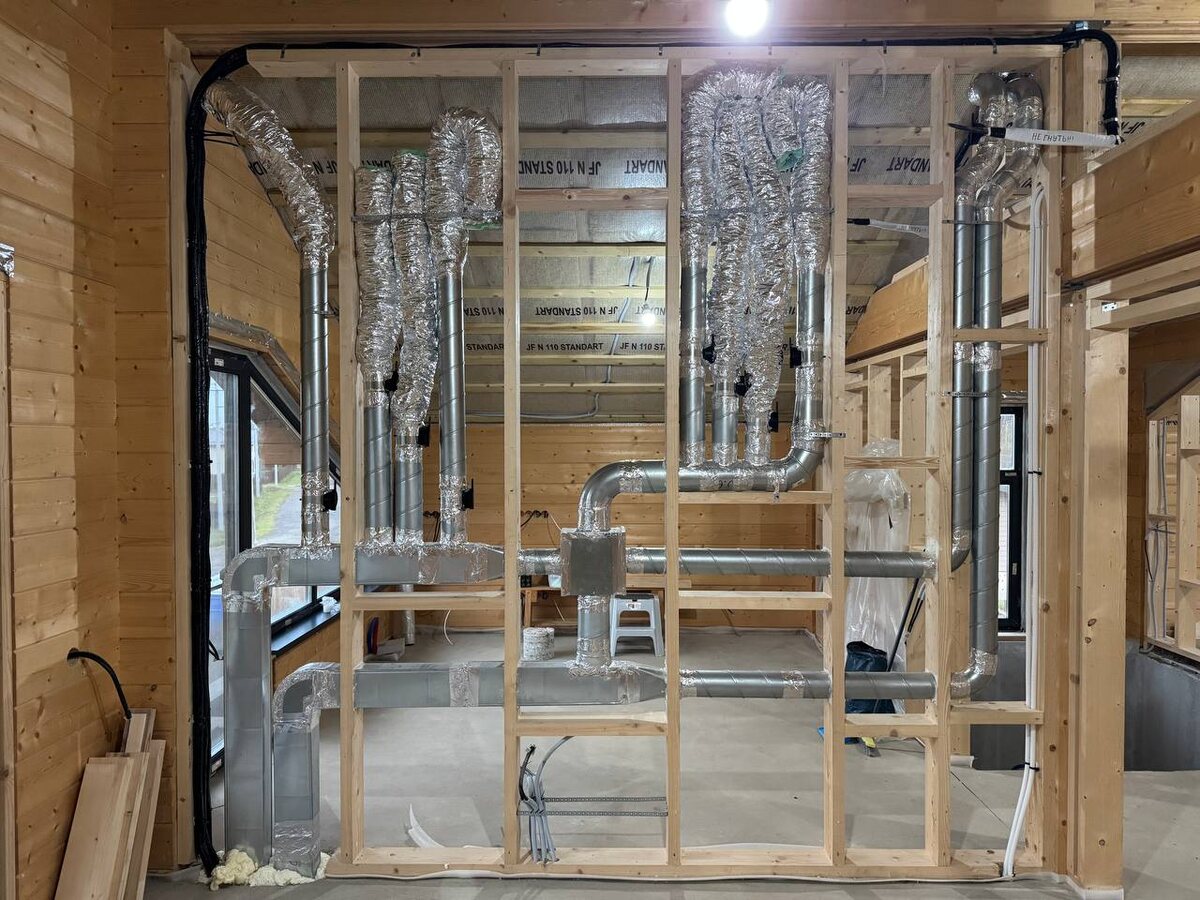 🏡 МО Деревня Нерощино | Проект дома 140 м² Мы завершили монтаж системы вентиляции в уютном доме площадью 140 м² в деревне Нерощино. В качестве продвинутого решения установили приточно-вытяжную систему TURKOV с рекуператором и водяным нагревателем, обеспечивающую комфорт и свежий воздух круглый год. 🔧 Особенности проекта: - Монтаж оцинкованных воздуховодов с пересечением внутри деревянной перегородки — сложный, но реализуемый аккуратно и надежно. - Вытяжка выходит на крышу через проход Vilpe, что снизило шум и избавило от необходимости дополнительных решеток на фасаде. - Проект был непростым: заказчик требовал аккуратности и точности — мы следовали принципу "7 раз отмерь, один отрежь!" ✅ Результат: Работа системы подтверждает свою эффективность — работает очень тихо и достигает проектных показателей даже на 2-й скорости (70% мощности). 🌱 Дышите свежим воздухом 24/7. Комфорт и здоровье вашей семьи — в наших руках.