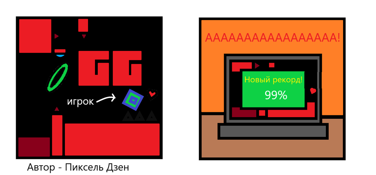 Всем привет! Я начал рисовать комиксы. Если что, на моём прошлом канале я уже рисовал комиксы про Майнкрафт, но так как я ушёл с него, я буду продолжать их на этом канале. И не только про Майнкрафт, но и про много чего другого. Вот, нарисовал комикс про Геометрию Деш. Каждый фанат поймёт. На этом всё. Если хотите, можете предложить свои идеи для новых комиксов в комментариях. Всем пока!