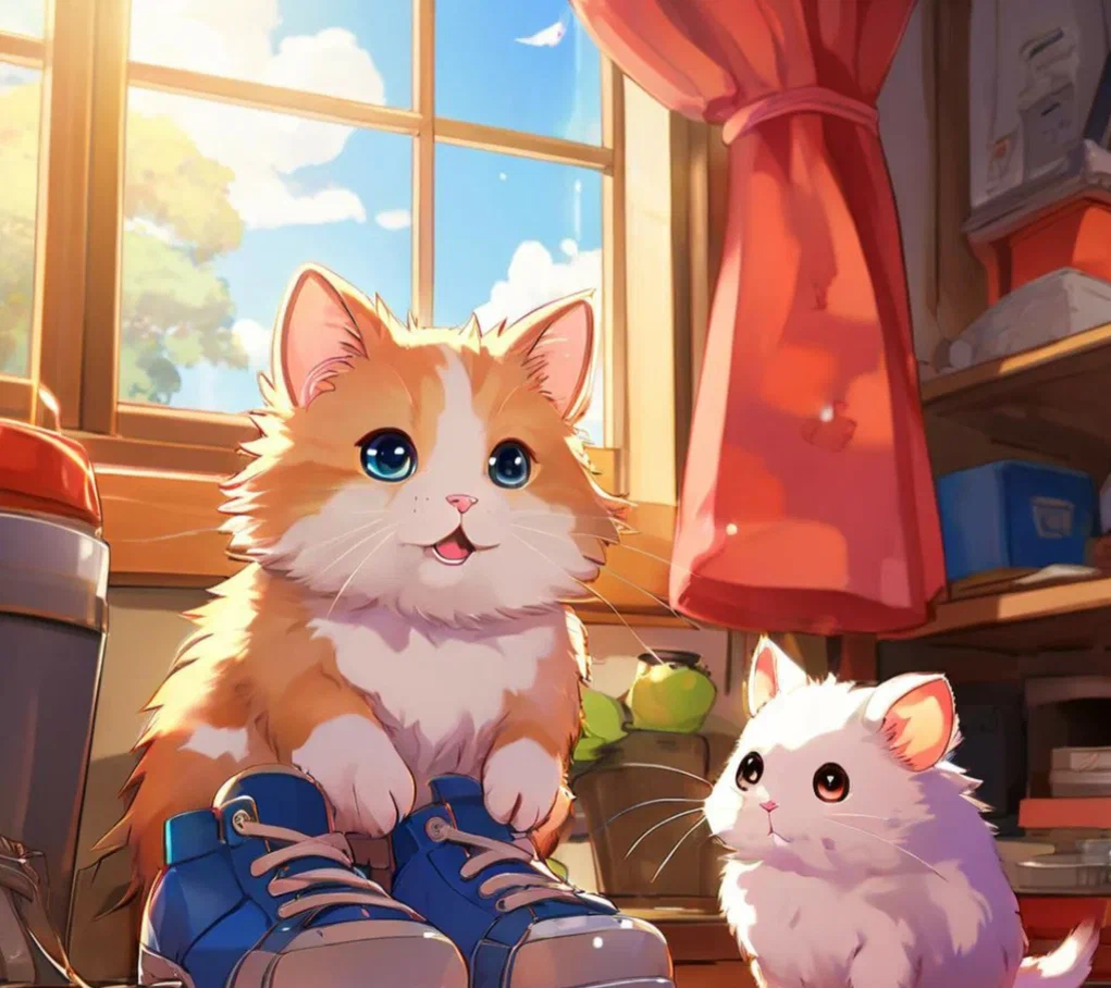 Аделина и Ильнар — двойняшки, им по семь лет. Они ходят в школу и очень любят своих питомцев. У Аделины есть хомячок Пикси, а у Ильнара — котик Пушок. Однажды, после школы, дети решили поиграть с питомцами. Аделина достала из клетки своего хомячка и посадила его на диван. Хомячок был очень любопытным и сразу же начал исследовать новую территорию. Он бегал по диванчику, нюхал всё вокруг и даже пытался залезть повыше по спинке дивана. Ильнар, в свою очередь, играл с Пушком. Он бросал ему мячик, а Пушок ловко ловил его лапками. Котик был очень игривым и любил бегать за игрушками. Вдруг, Аделина заметила, что хомячок исчез. Она начала искать его под диваном, но нигде не могла найти. Ильнар тоже присоединился к поискам, и они вместе обыскали всю комнату. В это время Пушок, который наблюдал за всем происходящим, вдруг подошёл к шкафу и начал мяукать. Дети подошли ближе и увидели, что хомячок спрятался за обувью. Они осторожно достали его и посадили обратно в клетку. Аделина и Ильнар были оче
