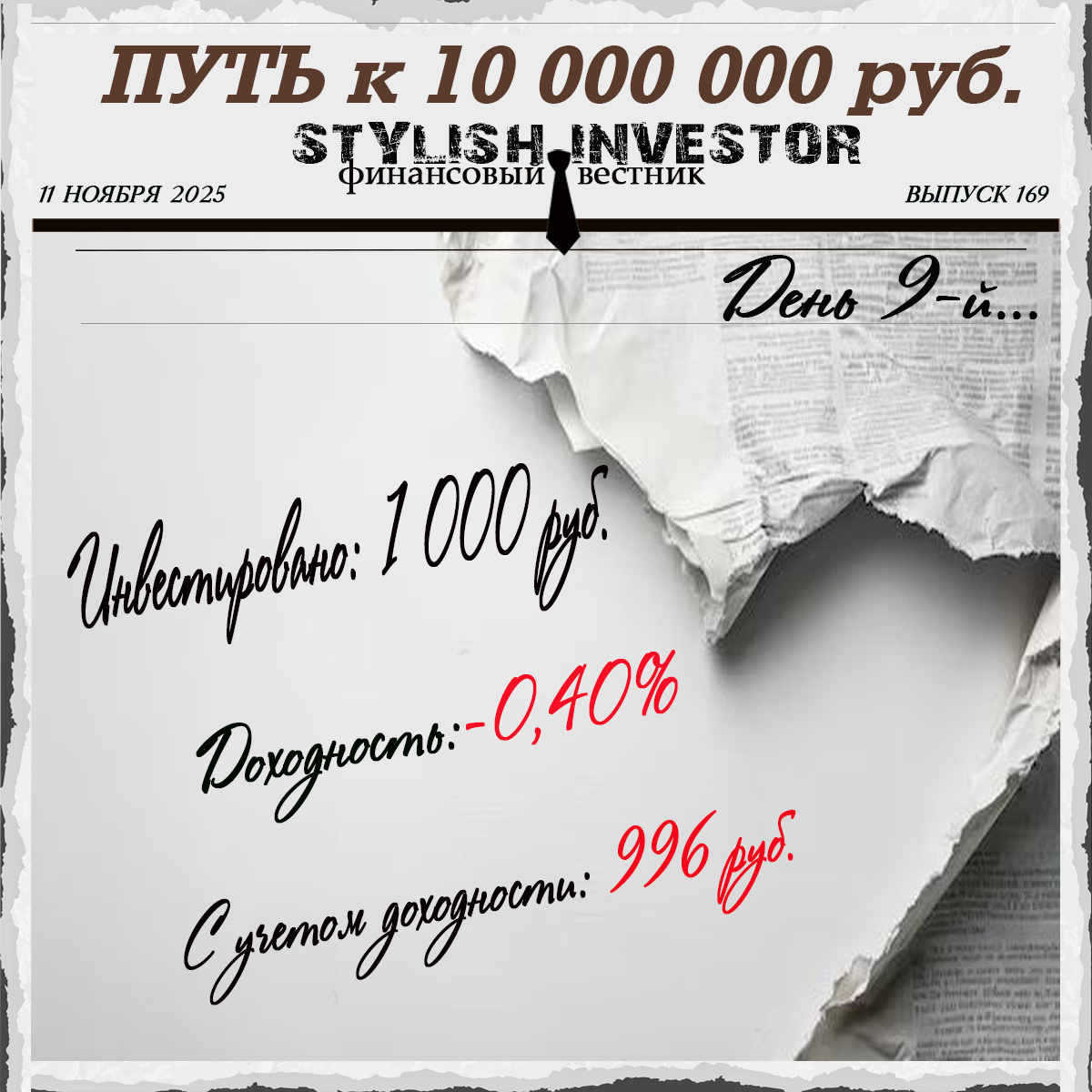 Сколько времени и денег нужно, чтобы заработать на акциях 10 000 000руб.? День 9-й.