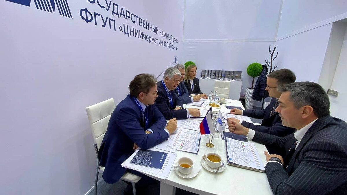 На стенде ЦНИИчермет им. И.П. Бардина только что завершились переговоры с представителями ООО «Союзметаллсервис» (Алчевский металлургический завод). Обсудили с металлургами направления сотрудничества по различным инжиниринговым проектам.