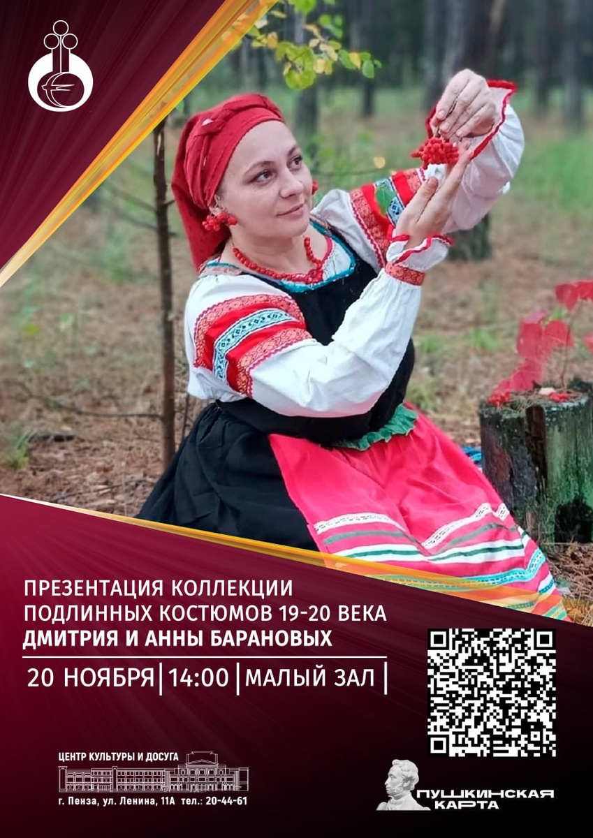 ✨ Презентация коллекции подлинных костюмов XIX-XX веков народов России Дмитрия и Анны Барановых 🇷🇺 В преддверии 2026 года, объявленного Президентом РФ В.В. Путиным Годом единства народов России приглашаем на выставку-презентацию подлинных костюмов XIX-XX веков народов России из личной коллекции семьи Барановых. 📌Будут представлены костюмы XIX-XX веков народов России: Пензенской, Воронежской, Брянской, Вологодской, Нижегородской областей, Чувашской, Марийской, Мордовской Республик и Республики Татарстан. ✅Возраст некоторых костюмов достигает более 130-ти лет: свадебные, повседневные, праздничные, зимние, а также украшения к ним. 🎤 В ходе мероприятия ведущая Валерия Андреева расскажет об истории этих костюмов, итересных фактах о них. и проведет со зрителями интерактив. 🎶Для собравшихся выступит этно-фолк группа "Вертоград". Она исполнит авторские и народные песни. 6+ ✅ Онлайн билеты: golnk.ru/ezead