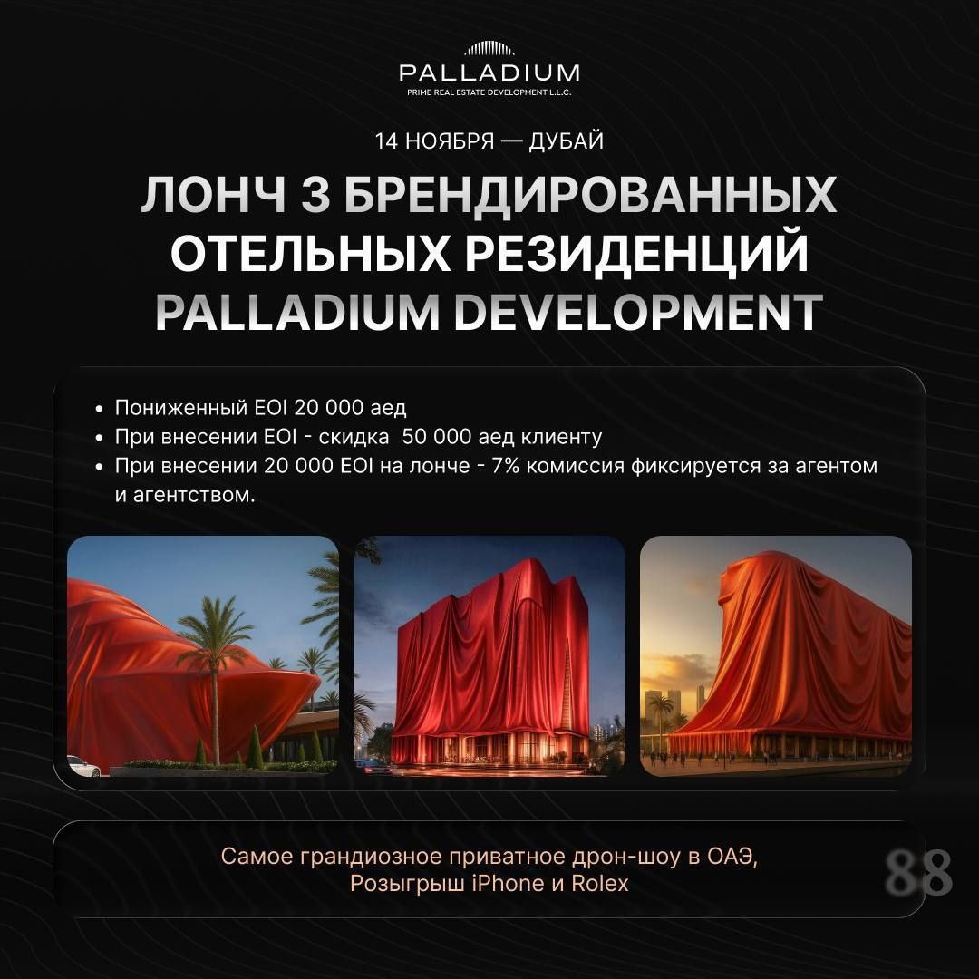 14 ноября в Дубае — лонч 3 брендированных отельных резиденций Palladium Development