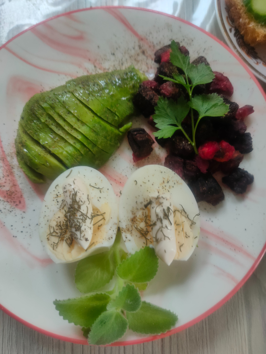 Доброго дня всем вам, милые дамы , верные спутники моего канала, а также те, кто из интереса заглядывает на его страницы! Меня зовут Надежда, и я приглашаю Вас на мою кухню, где покажу Вам мое меню на день. Вчера вечером завела будильник на начало 8, собиралась ехать в город, много дел скопилось, но, когда зазвенел он, не могла заставить себя встать, так хотелось спать. Хорошо, что не работаю. Могу себе позволить отложить все дела. Но долго спать не пришлось, разбудил телефон, пришло сообщение из Мотива, что в эту ночь снимут деньги. Не пойму, что у меня за тариф. Снимают за каждый разговор, да еще и за пакет минут уже дважды в месяц. надо ехать разбираться. Сегодня утор у нас солнечное, на улице температура плюсовая. Почти весь снег растаял. А вот ближе к вечеру похолодало до - 2. Скользко. Но завтра надо ехать. Срочные дела в долгий ящик откладывать нельзя. Завтрак у меня быстрый: порезала оставшееся авокадо, яйцо под майонезом, запеченные овощи ( морковь и свекла). Заварила черный н