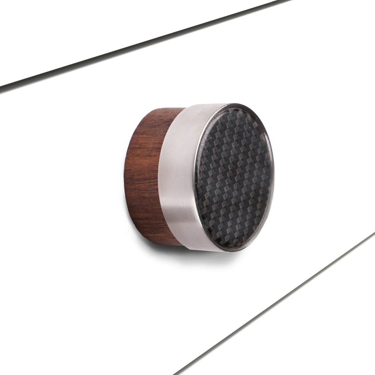 Pioneer — эффектная ручка-кнопка из премиальной коллекции Esthete, сочетающая три материала: дерево, металл и карбон