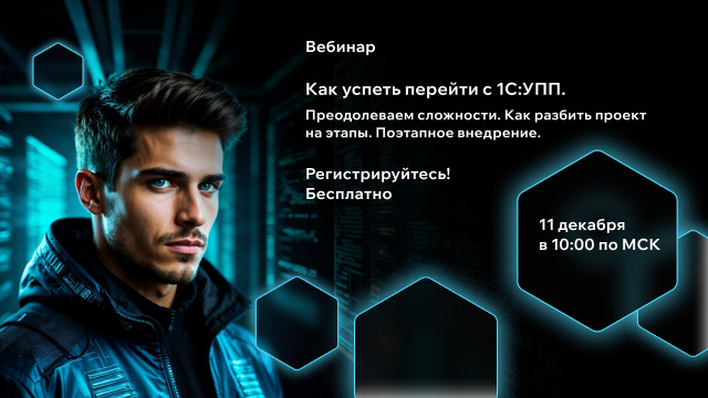Если вы до сих пор не начали искать альтернативу «1С:УПП», времени почти не осталось. Каждый день промедления увеличивает риски: растут затраты на поддержку, подрядчики заняты, а попытки переноса данных в новую программу без должной подготовки могут привести к серьезным сбоям в учете и производственных процессах. Ошибки в этом процессе обходятся слишком дорого – от простоев до перерасхода бюджета. Но что делать, если времени катастрофически не хватает? Как осуществить плавный переход, без критичных потерь и с минимальными рисками для бизнеса? 11 декабря 2025 года в 10:00 (МСК) проведем вебинар, где мы пробно расскажем, как преодолеть все сложности, с которыми сталкиваются компании при переходе с «1С:УПП» на популярную альтернативу в виде 1С:ERP. Мы разберем шаг за шагом, как не просто перенести базу данных, а грамотно адаптировать систему, чтобы сохранить управляемость, учет и маржинальность. Мы поделимся с вами: Этот вебинар — шанс для ИТ-руководителей, генеральных директоров, финансо