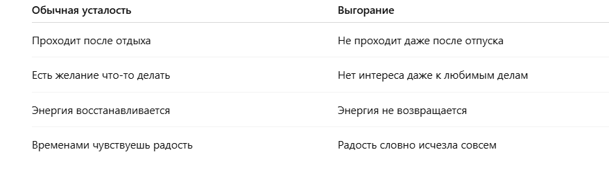 Человек становится «функцией» — делает, но не живёт. Эмоционально-фокусированная терапия называет это «заморозкой чувств»: когда мы выключаем эмоции, чтобы не страдать, но вместе с болью гаснет и радость. Они могут быть незаметными — особенно для тех, кто привык быть «сильным» и «ответственным»: Выгорание — это не лень. Это сигнал, что душа уста