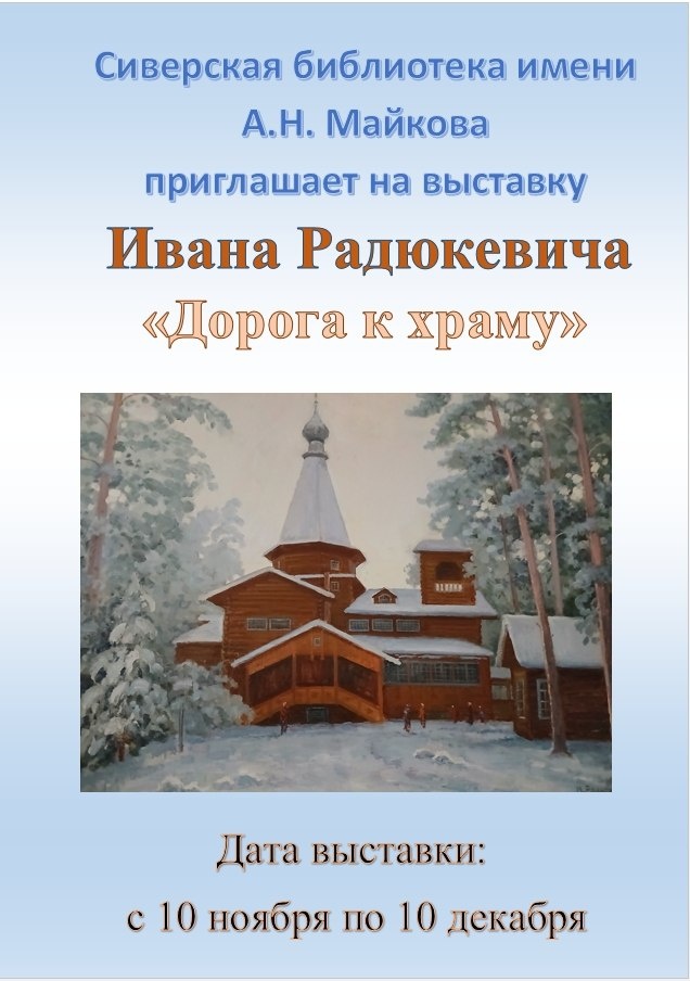 Дорогие друзья! Библиотека имени А.Н.Майкова 📖 приглашает всех любителей искусства на выставку И.Н. Радюкевича под названием "Дорога к храму". Иван Николаевич является членом Гатчинского товарищества художников, живет и работает в Сиверском городском поселении. Он не только художник, но и замечательный поэт, музыкант. На выставке представлены красивые зимние и осенние пейзажи, изображающие храмы нашего края и природу вокруг них. Ждем всех желающих!!! С Рождеством Богородицы Звучала молитва из маленькой церкви в открытые окна сентябрьским днём. А день был прозрачным, как лик на иконе, и листья, как слёзы, стекали с берёз. И грозди рябины оранжево -красной молитве той вторили, вспыхнув, как свечи, и как бы хотелось, чтоб эту молитву услышали все на огромной планете. И замерли б люди в прозрении чудном, и мир, и покой на земле воцарились. Звучала молитва из маленькой церкви, а мир был огромный, а мир был живой. (И.Н.Радюкевич) Источник Наш канал в Max, вступайте Источник: Открыть