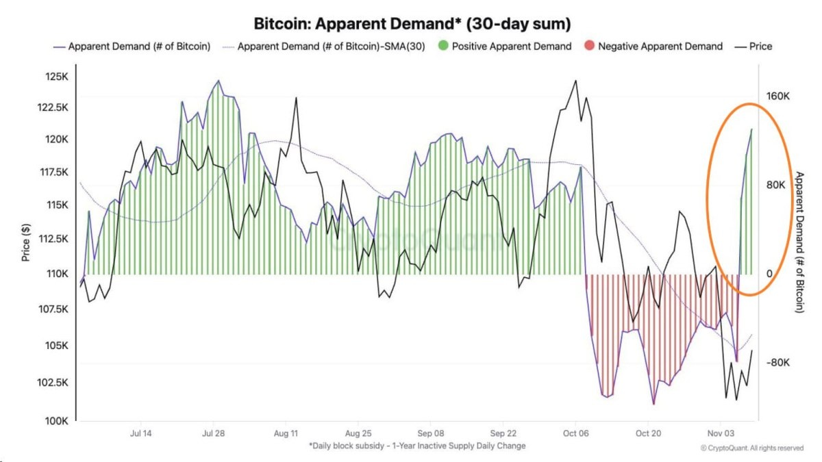 💥✴️ CryptoQuant отмечает резкий рост спроса на BTC на спотовом рынке