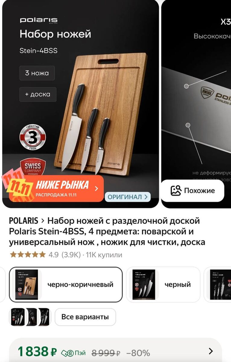 Набор ножей с разделочной доской Polaris Stein-4BSS, 4 предмета: ⏺поварской нож ⏺универсальный нож ⏺ножик для чистки ⏺доска https://market.yandex.ru/cc/7z3VzF Цена на 🛍: 1838 ₽ | 8999 ₽ рейтинг: 4.9 ⭐️ выгодная цена 💲 ⭐️BER103-AF — минус 100₽ на один любой заказ от 5000₽ ✅ Подписаться 🔣 Бот с промокодами
