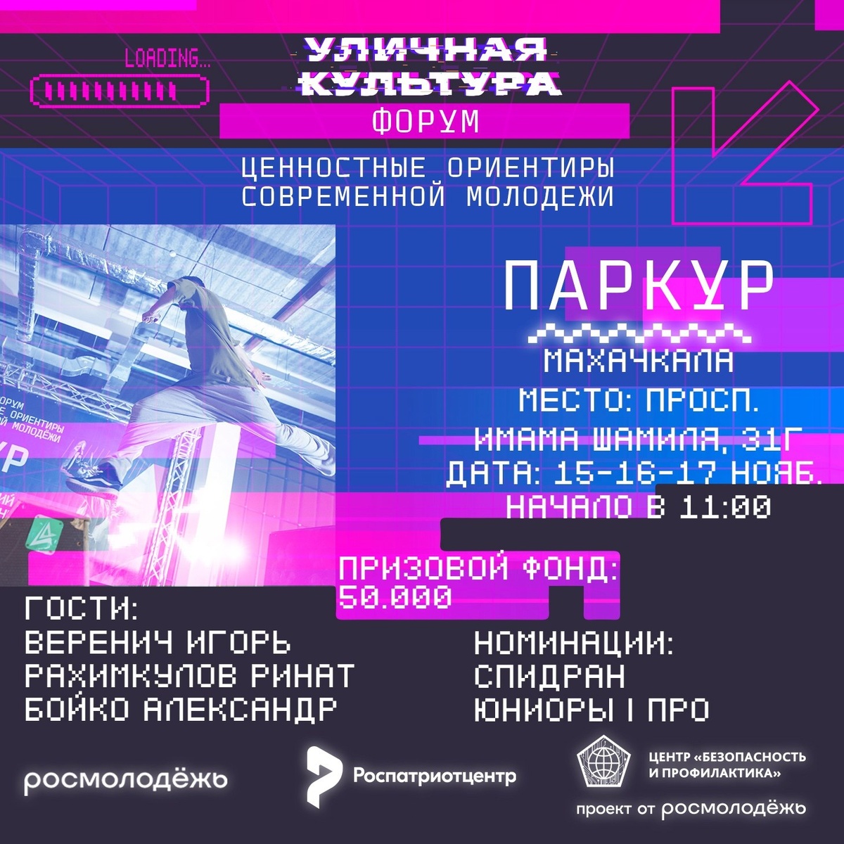 Паркур в Махачкале 15-17 ноября с участием Веренича Игоря, Рахимкулова Рината, Александра Бойко и Карима Бойко С 15 по 17 ноября в Махачкале состоится масштабное событие, посвящённое паркуру — дисциплине, представляющей собой искусство эффективного преодоления городских препятствий. Мероприятие пройдёт по адресу: проспект Имама Шамиля, 31Г, начало запланировано на 11:00. Паркур, являясь не просто спортом, а целостной физической практикой, сочетает в себе силу, скорость, ловкость и уникальное умение трейсера «читать» городское пространство, находя оптимальные пути для перемещения. Форум «Ценностные ориентиры современной молодежи» выступает организатором этого события, в рамках которого запланирована насыщенная программа. Ключевыми фигурами, которые выступят в роли судей и почётных гостей, станут признанные представители паркур-сообщества: Игорь Веренич — опытный атлет, хорошо знакомый с нюансами соревновательной деятельности и организацией тренировочного процесса. #паркур Подробнее...