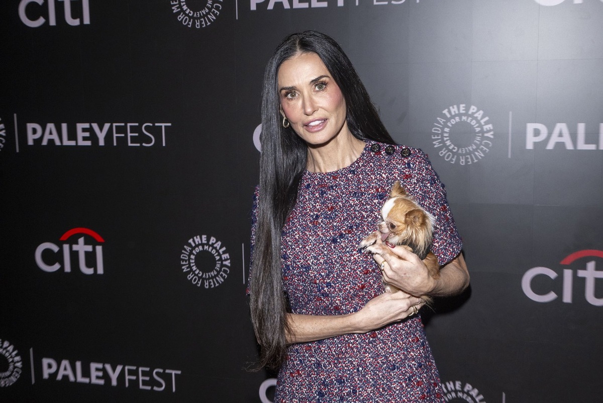 63-летняя Деми Мур в мини-платье вышла в свет со своей собакой