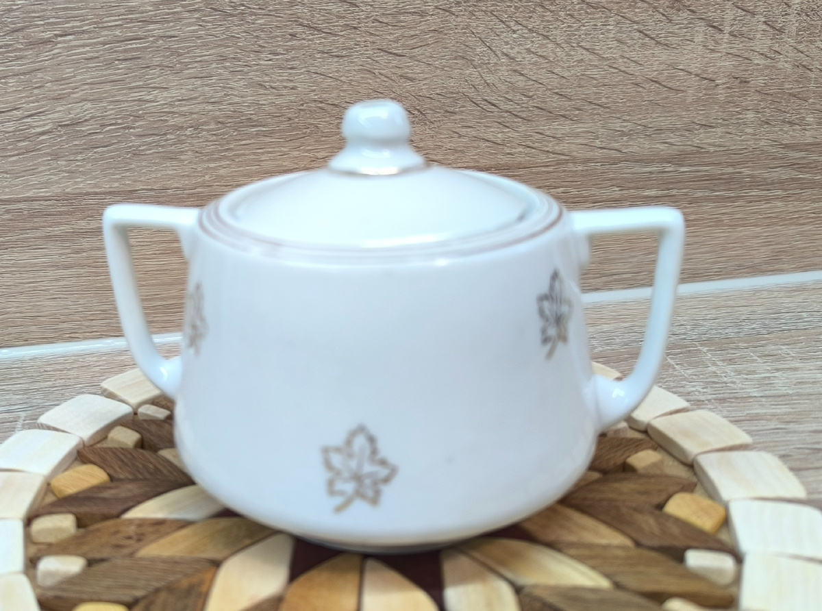 Рада приветствовать, Вас на моем канале. Хочу сегодня поделиться с Вами своим новым приобретение, собирала информацию, но её оказалось очень мало. Предлагаю Вашему вниманию сахарницу производство Хайтинского Фарфорового завода из Сибири г. Иркутск. Возраст примерно с 1954-1957-е годов прошлого века СССР, о чем говорит клеймо. Я вообще сахарницы с ручками люблю больше, меньше вероятность, что она из рук выскользнет. Мелкие золотые листочки, скромно украшают бока сахарница. Она трапециевидной формы с квадратными ручками и золотой обводкой. Сахарница можно сказать в идеальном состоянии с небольшими столами на крышечке (но похоже она не родная). В пару к ней к меня есть пиалочка того же ФЗ но более поздняя 1980-1990 годов. На мой взгляд, очень хорошо смотрятся, как подружки, с сахарницей из Вербилок к тому же еще и погодки. На просторах инета выудила информацию о подобной сахарнице. По моему мнению, очень похожая с моей, возможно могу ошибаться. Кто точно знает уточните??? Советский фа