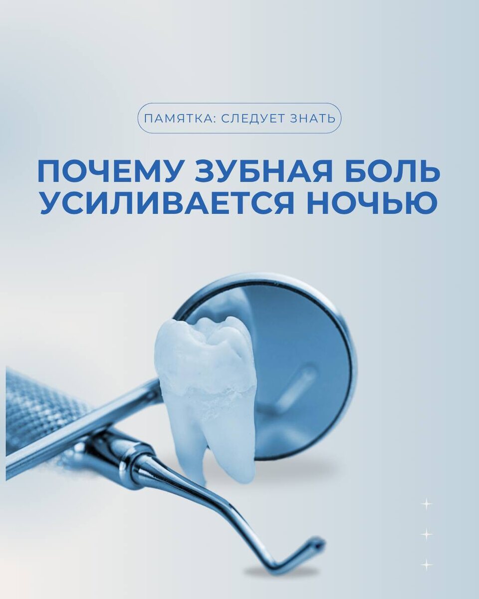 🦷 Бывает, что днём зуб лишь слегка ноет, а вот ночью боль становится невыносимой — пульсирует, мешает уснуть и словно «стреляет» в висок