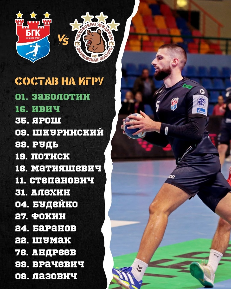 В заявке "Бреста" на матч СЕХА-лиги против "Чеховских медведей" присутствует хорватский голкипер Филип Ивич