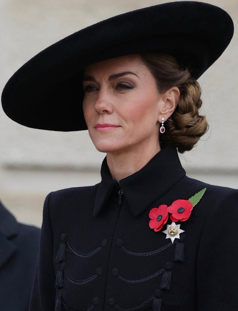 Сегодня супруга наследника совершила сольный выход, посетив очередное мероприятие, посвященное Дню памяти. На ежегодной службе у Мемориала Вооруженных сил Кэтрин побывала впервые, присоединившись к ветеранам и их семьям. В одиннадцать часов принцесса присоединилась к военнослужащим в минуте молчания, а затем возложила венок в память о павших. К венку была прикреплена рукописная записка, в которой говорилось: "В память о тех, кто принес высшую жертву, мы будем помнить их. Кэтрин". Сообщается, что присутствие королевской особы "подчеркивает ее многолетнюю работу с военными сообществами и то личное значение, которое она придает признанию опыта и жертв Вооруженных сил". На Кейт было черное пальто от Кэтрин Уокер, которое она надевала в прошлом году на мероприятие в Воскресенье памяти. Принцесса украсила пальто двумя маками и брошью. Также на супруге наследника были серьги в виде капель с бриллиантами и рубинами. Сегодня же состоялся аналогичный выход Камиллы, которая отпра