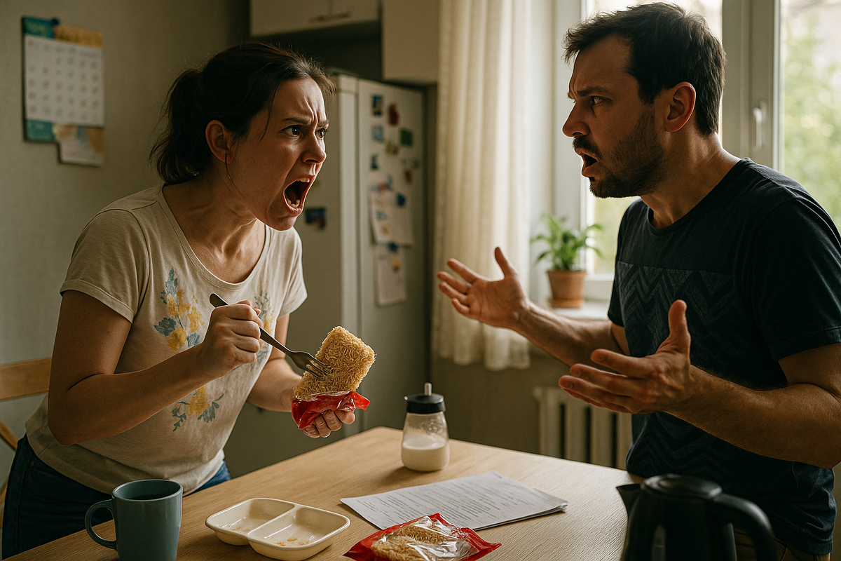Оксана стояла у плиты и помешивала в кастрюле дешёвую лапшу быстрого приготовления. Запах химических специй разносился по маленькой кухне однокомнатной квартиры. Она поморщилась, глядя на бурлящую воду с жёлтыми макаронами. Второй день подряд они ели эту гадость.